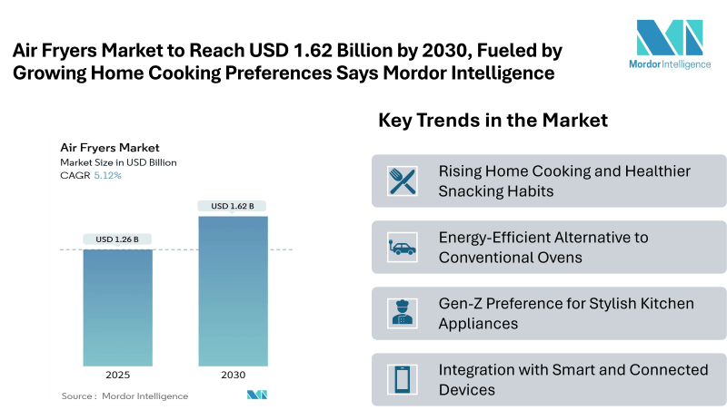 Home Press ReleasesAir Fryers Market to Reach USD 1.62 Billion by 2030, Fueled by Growing Home Cooking Preferences and Energy-Efficient Alternatives to Conventional Ovens