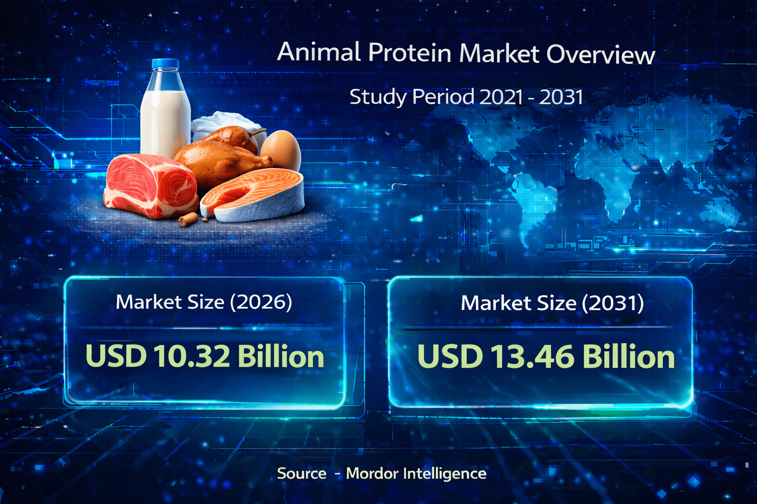 According to a research report by Mordor Intelligence, the global animal protein market size was valued at USD 9.79 billion in 2025, rising to USD 10.32 billion in 2026, and is projected to reach USD 13.46 billion by 2031, registering a CAGR of 5.45% during the forecast period.