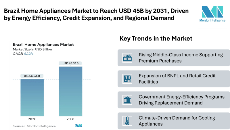 Home Press ReleasesBrazil Home Appliances Market to Reach USD 45.33 Billion by 2031, Driven by Energy Efficiency, Credit Expansion, and Regional Demand