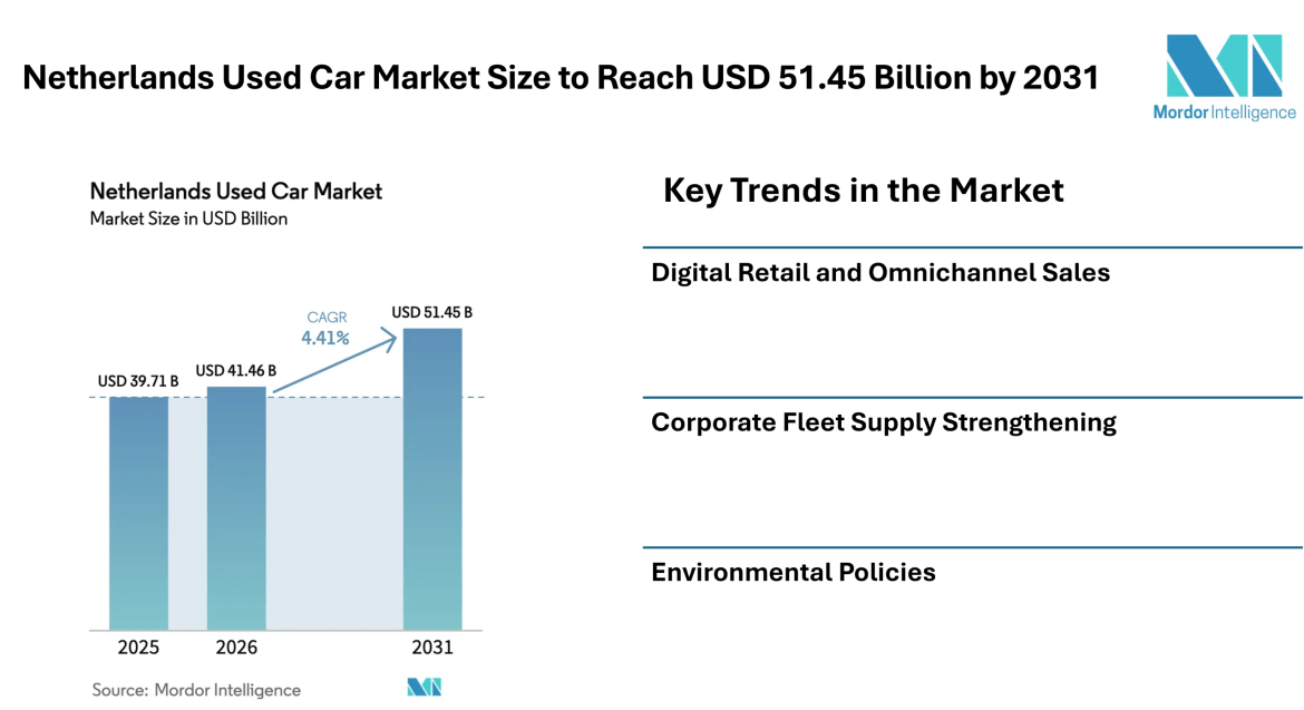 Home Press ReleasesNetherlands Used Car Market Size to Reach USD 51.45 Billion by 2031 Driven by Rising Digital Sales Platforms, Fleet Vehicle Supply, and Changing Consumer Mobility Trends – Mordor Intelligence