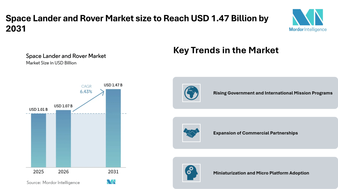 Home Press ReleasesSpace Lander and Rover Market size to Reach USD 1.47 Billion by 2031 Driven by Government Missions – Mordor Intelligence