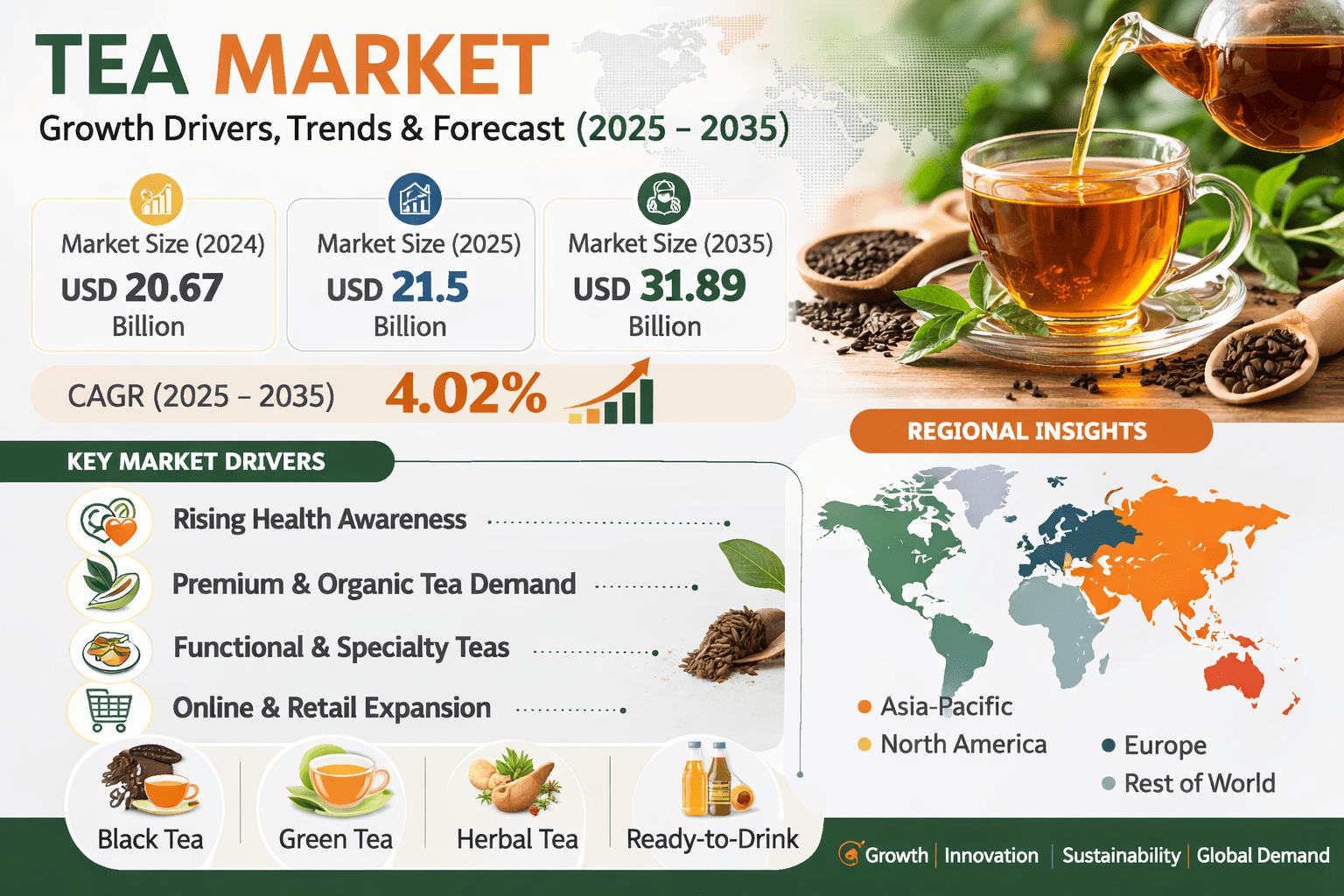 Home Press ReleasesTea Market Size to Reach USD 31.89 Billion by 2035 | Growth Drivers, Trends, and Industry Analysis