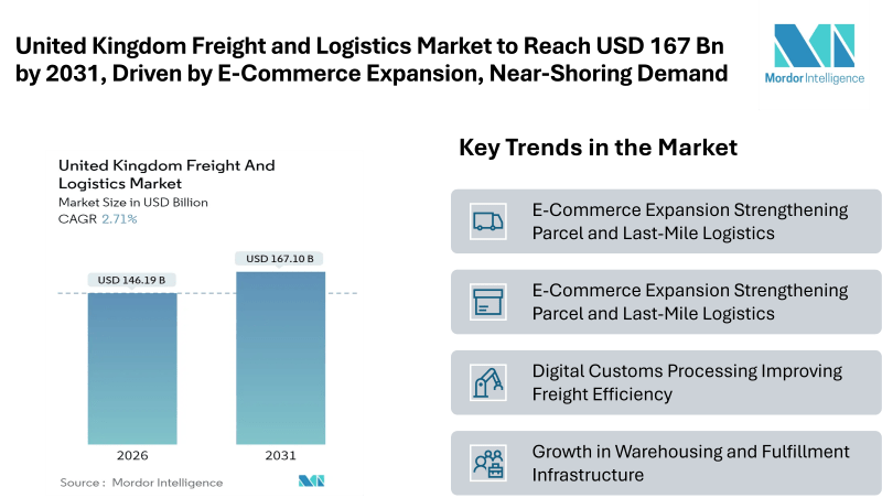 Home Press ReleasesUnited Kingdom Freight and Logistics Market to Reach USD 167.1 Billion by 2031, Driven by E-Commerce Expansion and Near-Shoring Demand